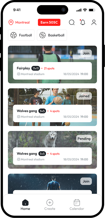 Filter games by sport, level, distance, or preferences. Never miss an opportunity to play.